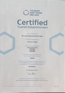We have a current Tourism Northern Ireland (NI) certificate to operate as a self-catering establishment.